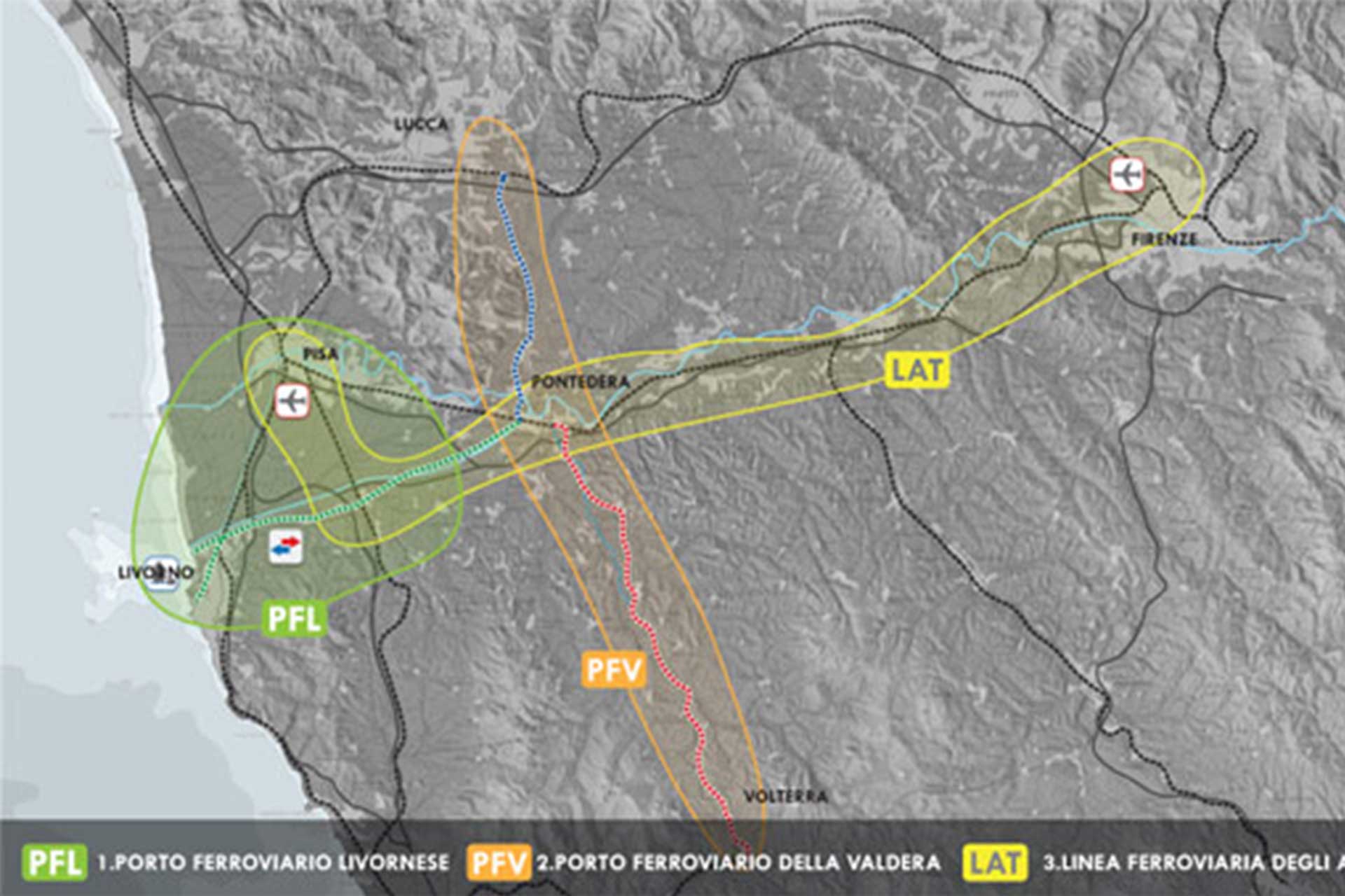 Ciò prevede un nodo ferroviario complesso nel Comune di Pontedera nel quale si innestano le tre nuove linee ferroviarie proposte per il progetto di area vasta: il nuovo braccio ferroviario di collegamento con il Porto di Livorno, la nuova linea Lucca-Pontedera (recuperando l’antico tracciato oggi dismesso) , la nuova dorsale della Valdera per il collegamento con Volterra.
